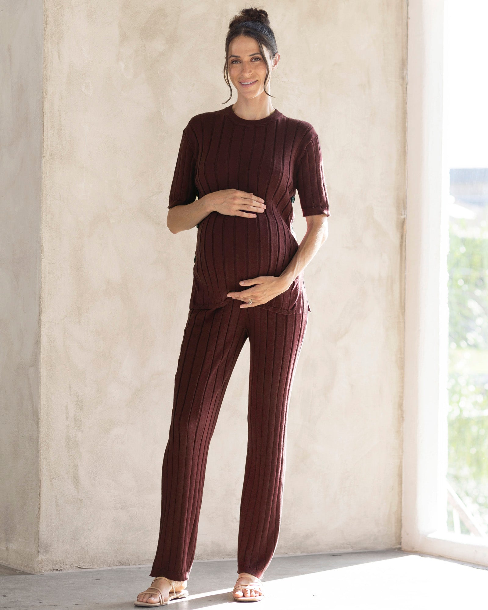 Stay comfortable all day in these stylish wide rib knitted maternity lounge pants, designed in a rich Chocolate Truffle hue. With a soft, high-waisted fit and relaxed leg, they provide effortless style and comfort throughout pregnancy and beyond.