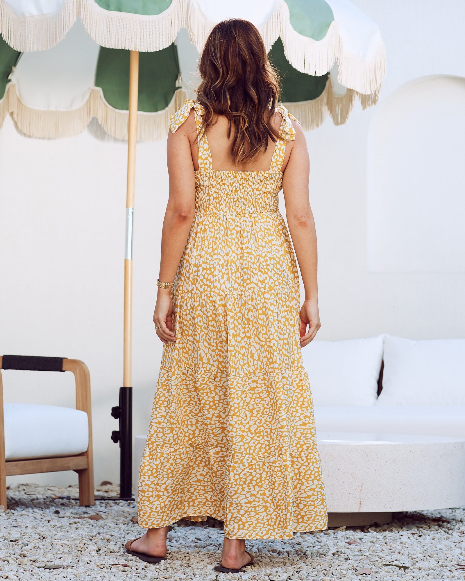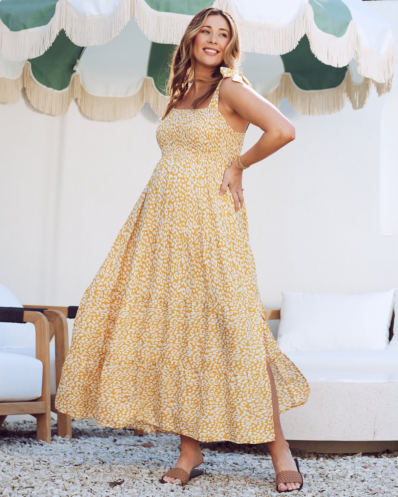 Chelsea Maternity Ruffled Maxi Dress in Yellow Animal Print