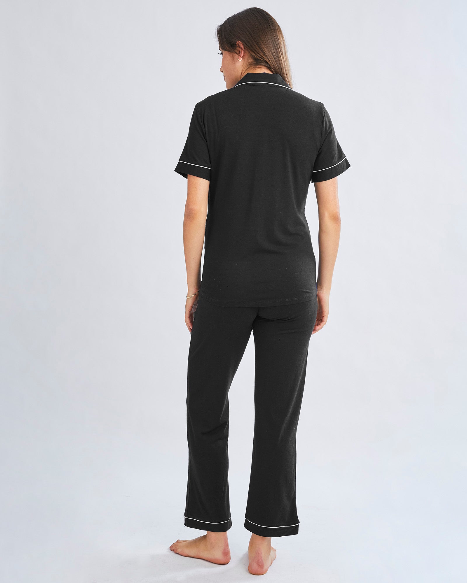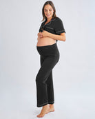 Button Front Short Sleeve Black Maternity & Nursing Pajama Set
