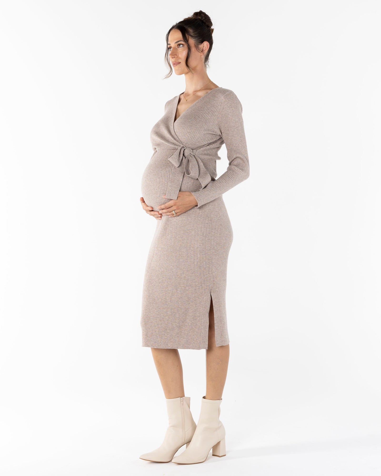 Lucille Knit Maternity Midi Dress in Taupe