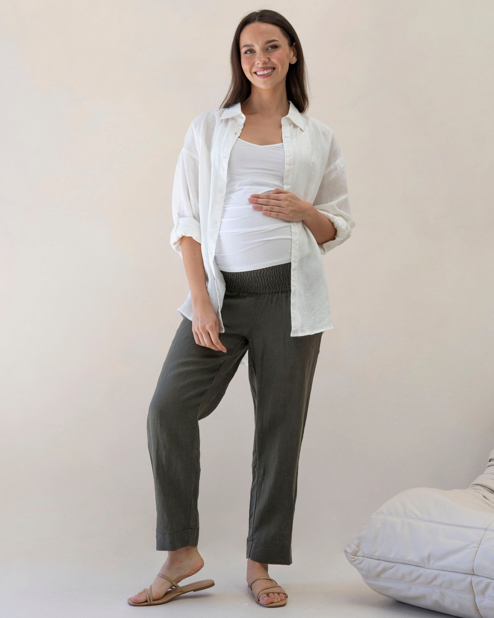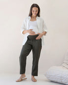 Pamela Tapered Linen Maternity Pant in Khaki