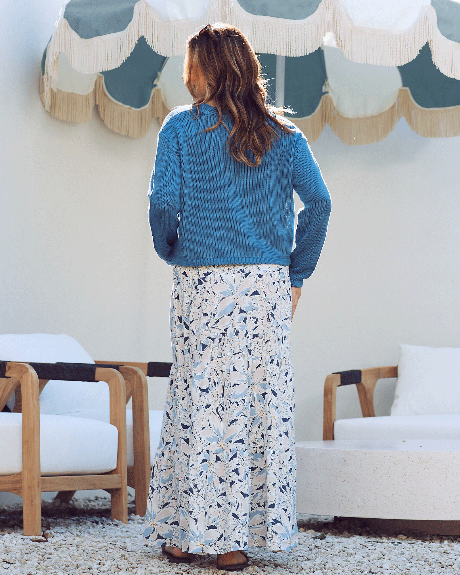 Phoebe Maternity Cropped Knit Sweater in Blue