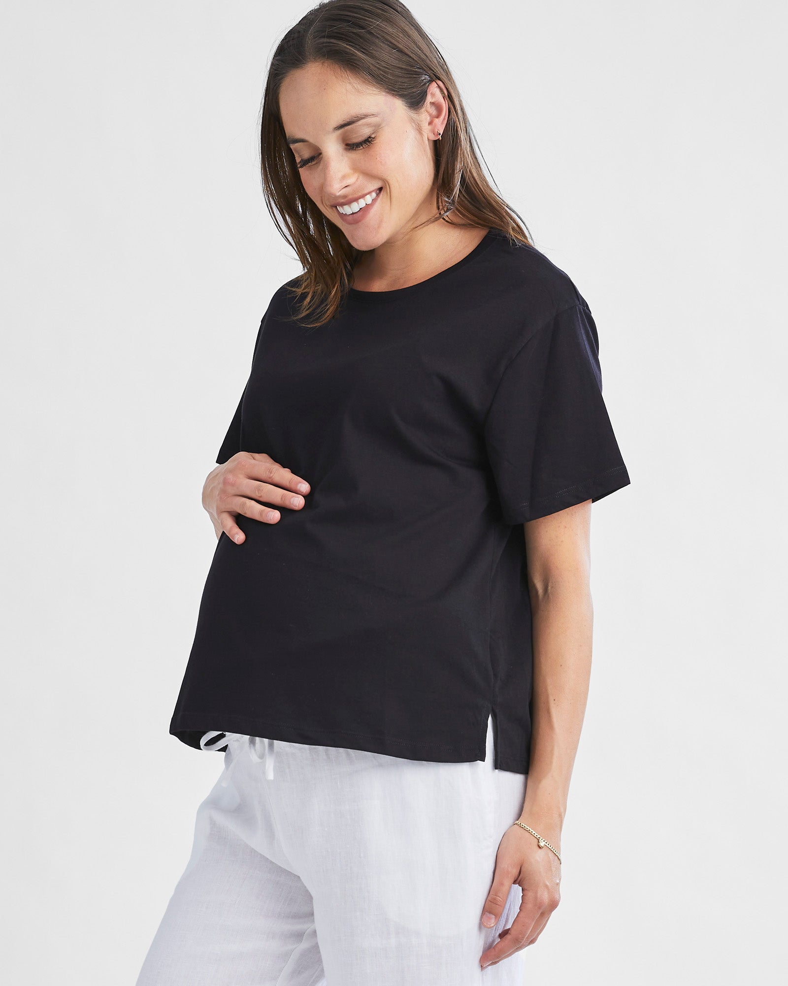 Versatile and Comfortable Maternity Cotton Tee in Black