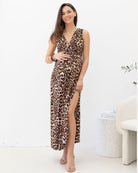 Irene Maxi Knot Front Maternity Dress - Animal Print