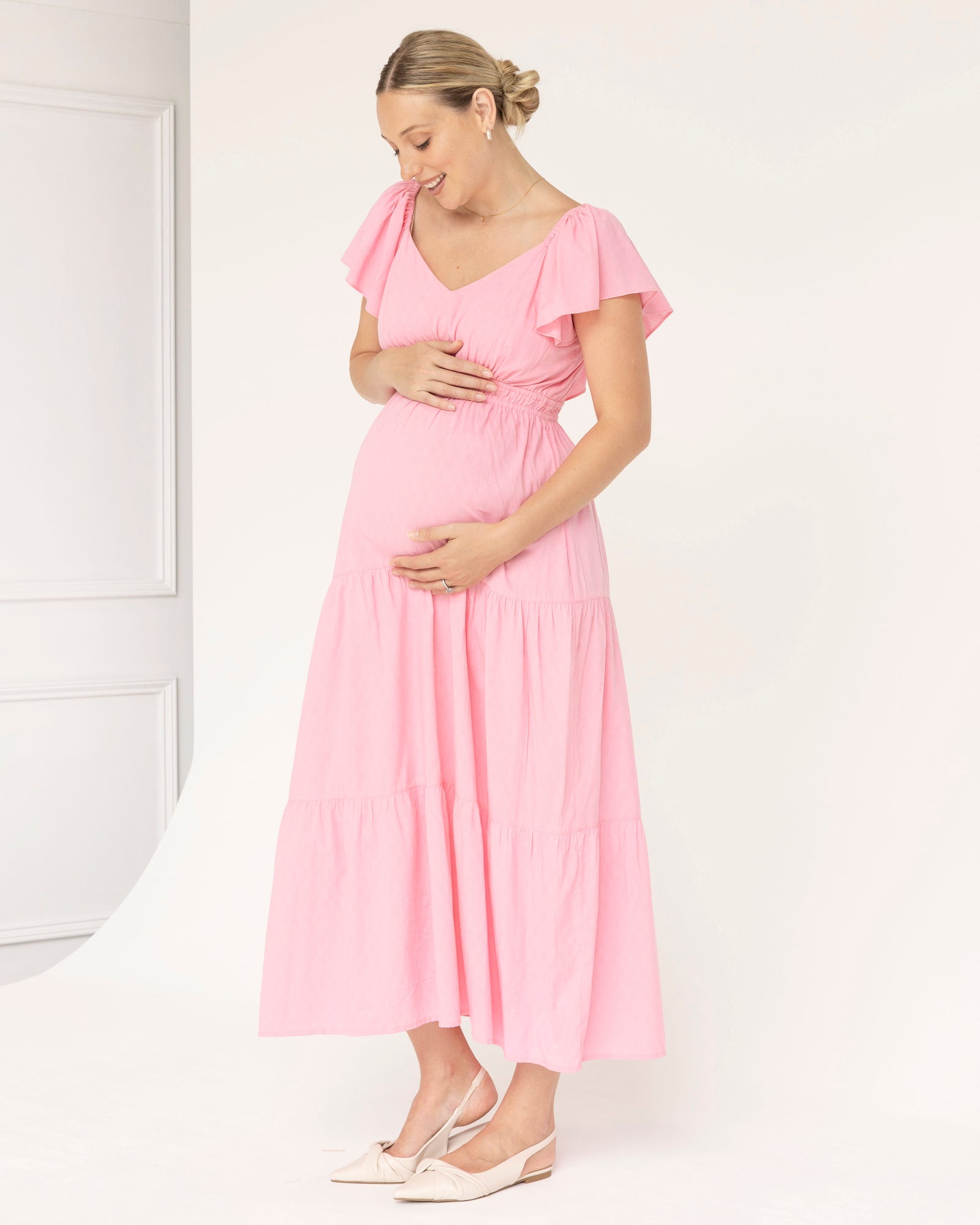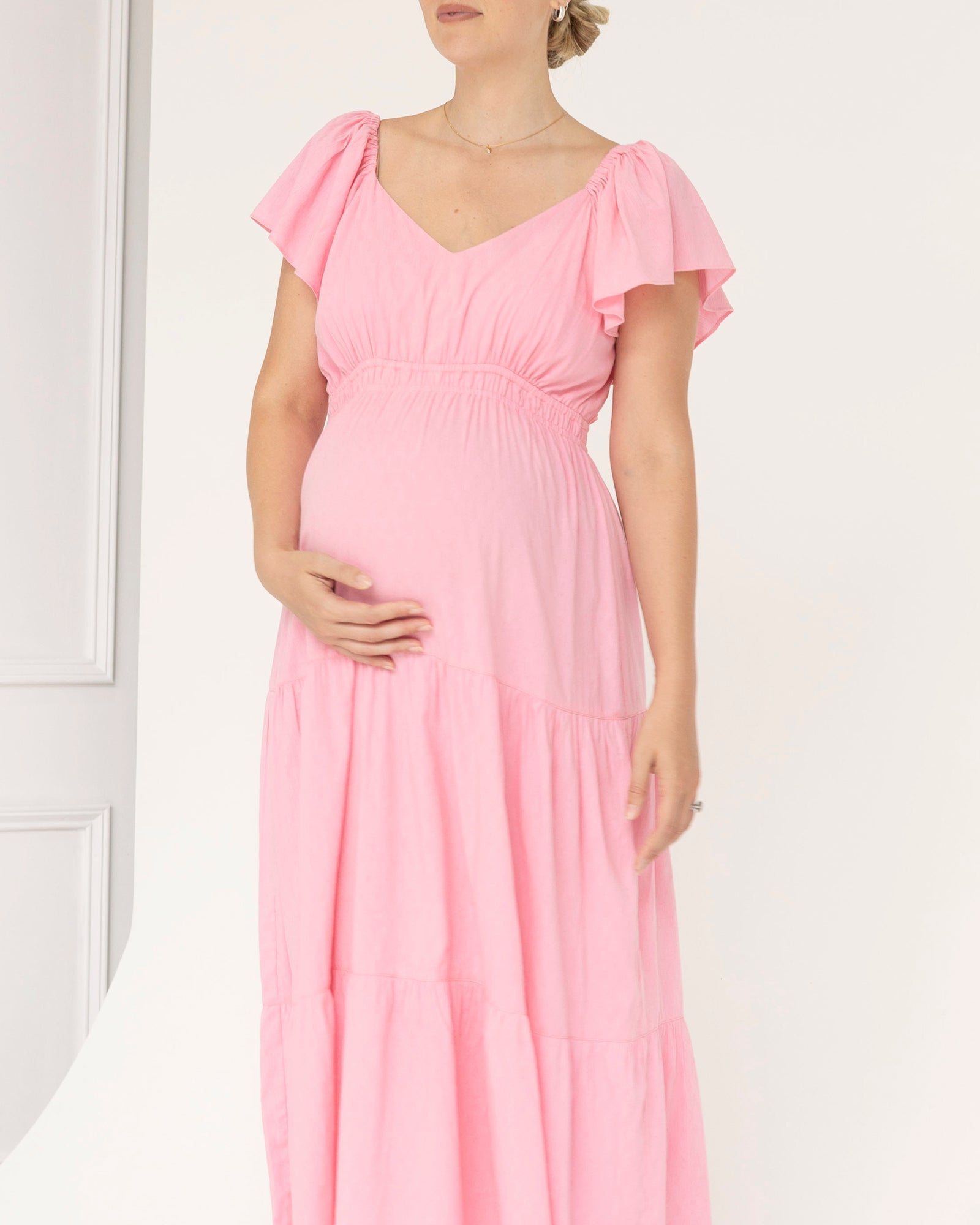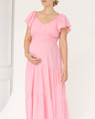 Embrace Elegance and Comfort with the Lila Baby Shower Maternity Dress in Sugar Pink