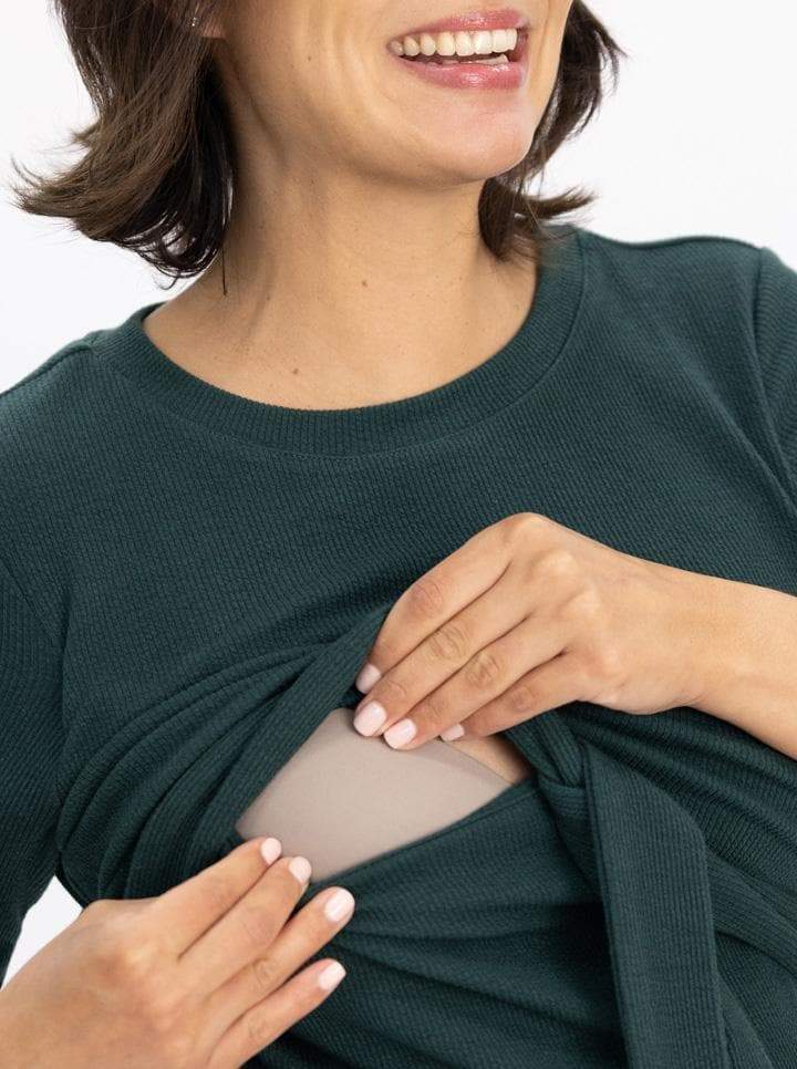 Maternity and Nursing Tie Knot Dress - Forest Green