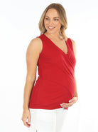 Our crossover tee is easy to wear throughout your maternity and after for nursing. Sleeveless style perfect for the hot weather days.
