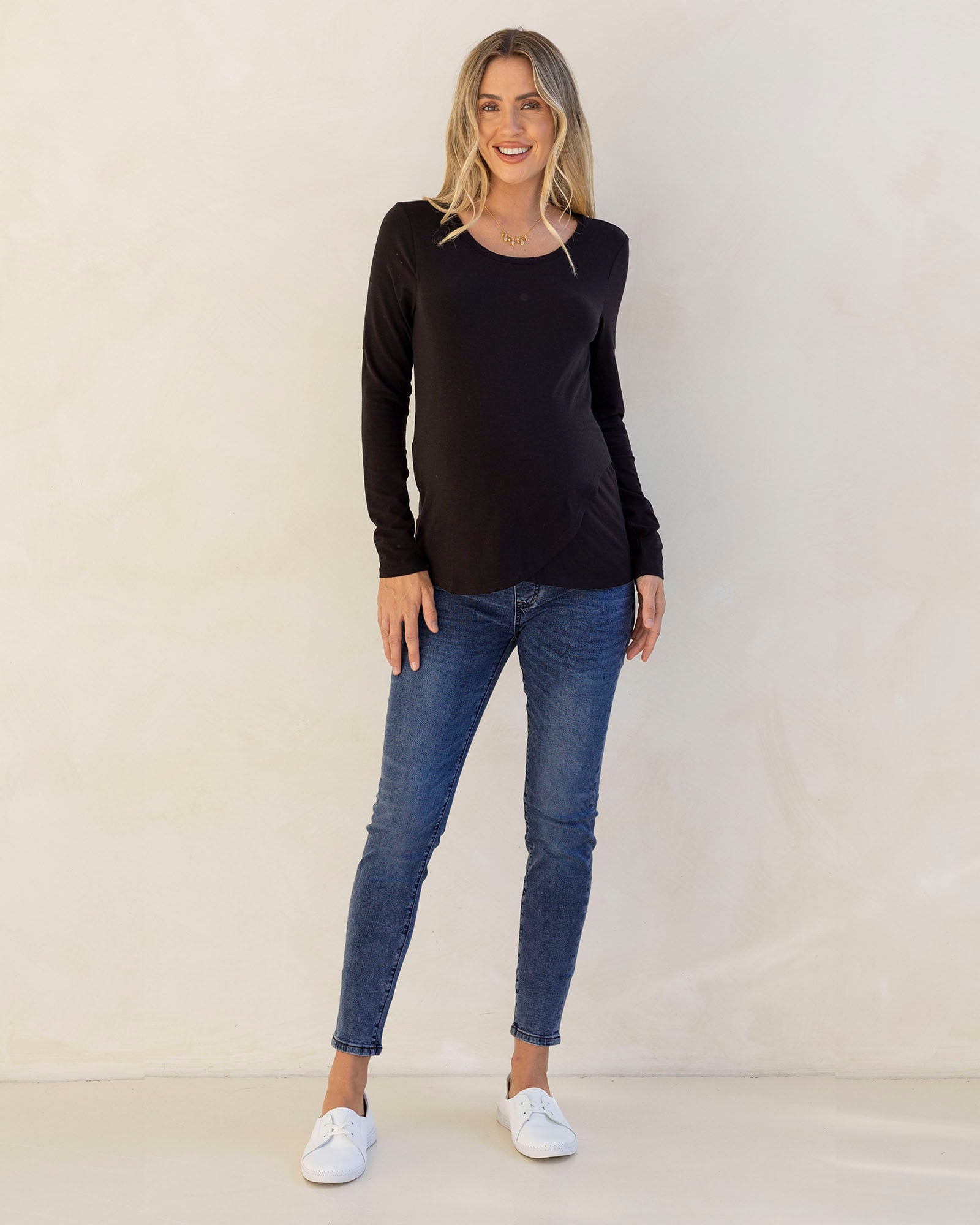 Our most comfortable maternity denim jeans! Cotton-rich denim with generous stretch and wide elasticised waistband to accommodate your baby bump. Perfect to wear during pregnancy.