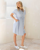 Effortlessly stylish and endlessly versatile, the Poppy Maternity Shirt Dress is a must-have for every mum-to-be. Crafted from a soft linen-viscose blend in a fresh chambray blue, this dress offers a breathable, lightweight feel that’s perfect for all-day wear. The classic button-down front made the dress nursing friendly, while the back ruching adds definition for a feminine silhouette. With sleeves that can be worn rolled up or down, handy side pockets, , this dress is designed to take you seamlessly from pregnancy through to postpartum.